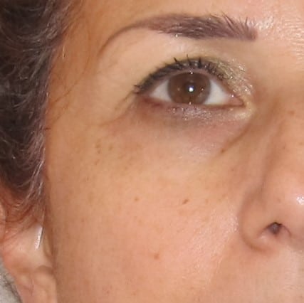 Deterioramento del colore ma sempre all’interno dell’arcata naturale della cliente. Infracigliare ancora perfettamente intatto dopo 10 anni.